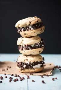 Chocolate chip cookies filled with buttercream and rolled in mini chocolate chips